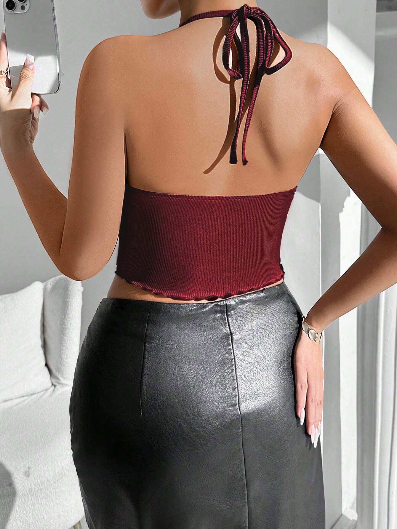 European & American Sexy Halter Top – Autumn Winter Backless Short Top for Women